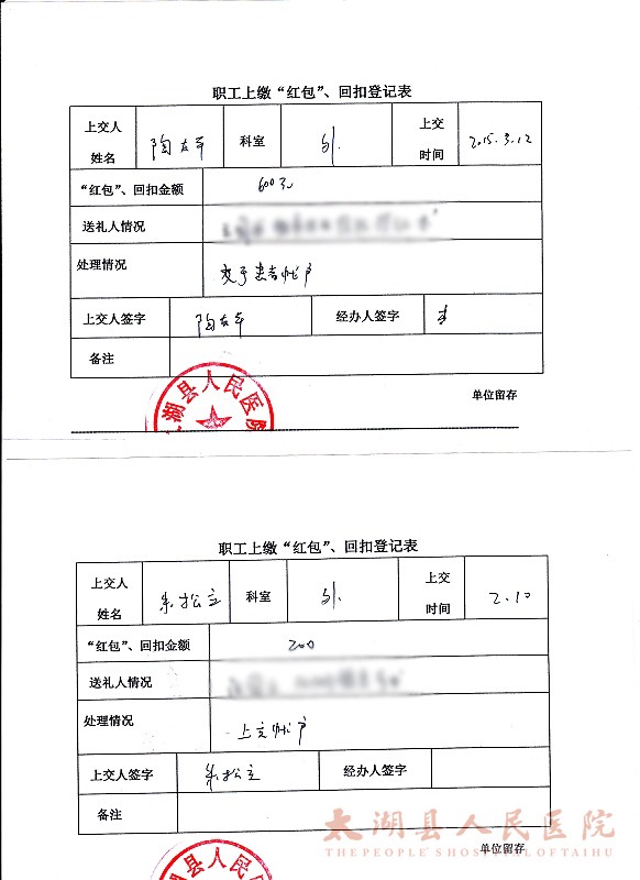 外科陶友平、朱松立主动拒收红包