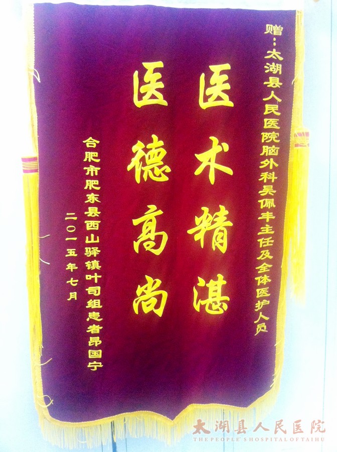 近日,家住合肥市肥东县的昂先生来到神经外科,吴佩丰医生及全科医护人员赠送锦旗表示感谢。