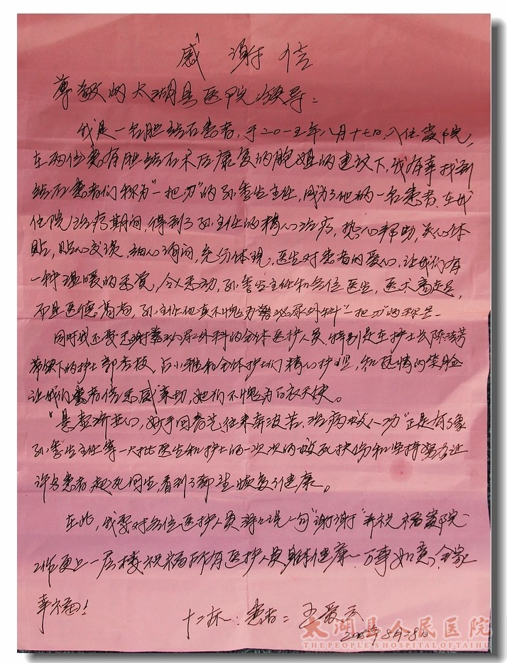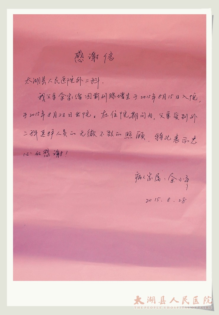 内一科收到患者感谢信