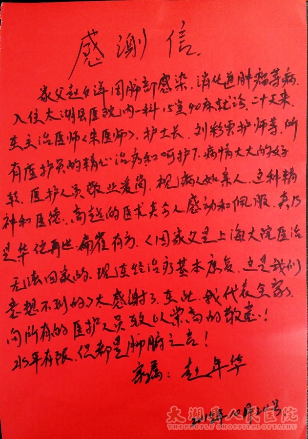 内一科收到患者感谢信