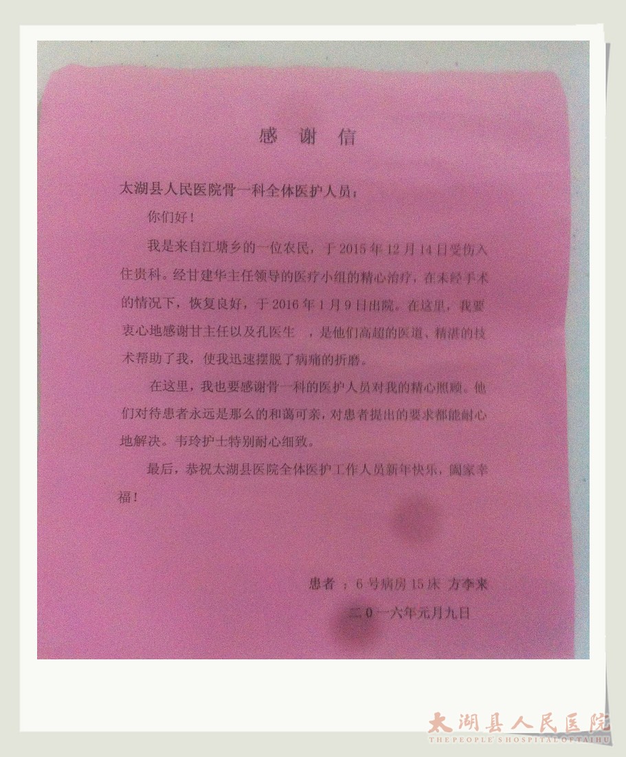 新年伊始,骨一科就收到患者热情洋溢的感谢信。