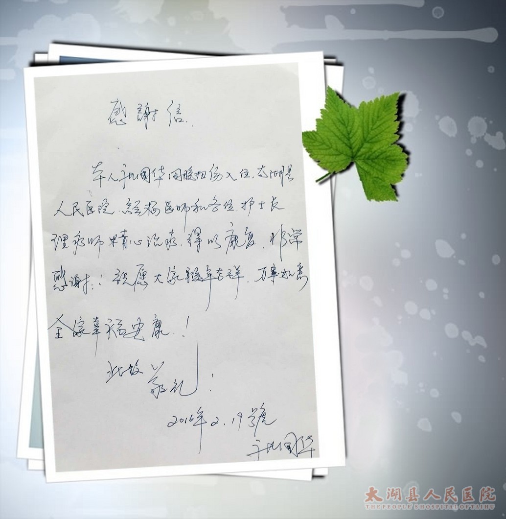 在康复科全体医护人员的精心治疗和细心护理之下,他的病情逐渐好转,住院一周后痊愈出院。临走时,张先生感动地说:“感谢大家对我的照顾,千言万语无以言谢,唯有一封感谢信表达对大家的敬意……”
