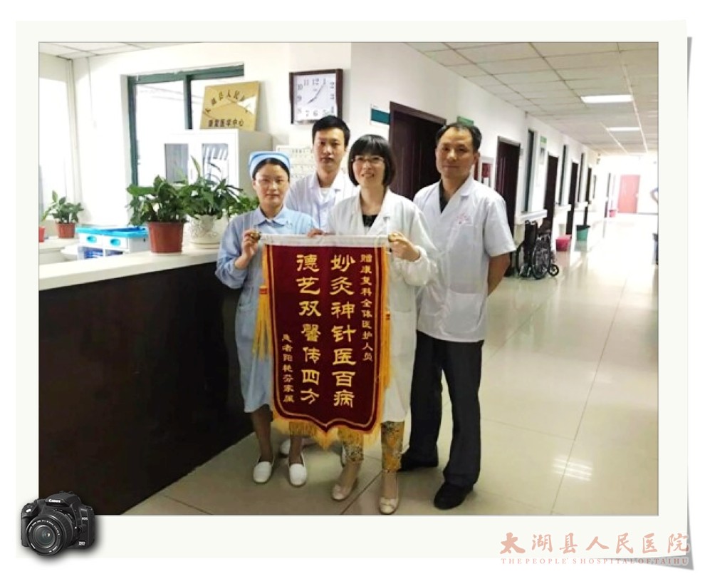 6月10号上午,患者阳女士及其家属将一面绣有“妙灸神针医百病,德艺双馨传四方”的锦旗送到康复科科主任杨善亮的手中,再三感谢康复科全体医护人员的精心治疗和热心服务。