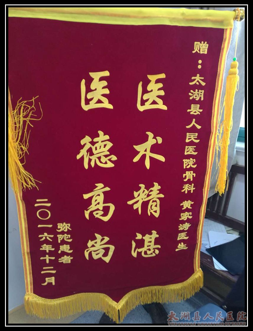 原来,送来锦旗的是前不久出院的21床患者家属,因高空坠落导致双脚踝骨折入住骨一科,住院期间其家属与医护人员发生了一些分歧,但骨一科的医护人员并没有因此对病人产生偏见,还是尽心尽力的为病人治疗,最终病人得以康复出院,复查的时候,家属特地带来一面写着“医术精湛 医德高尚”的锦旗,以表示感谢。(骨一科 凌芳)