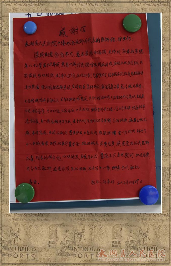 这一切孙大爷是看在眼里,记在心上,经过一段时间的治疗和护理,孙大爷的身体恢复良好,生活质量得到极大的提高。甚至出院以后还是念念不忘,感激之余,特地嘱托邻居送来感谢信以表达感激之情。(外二科 李敏)