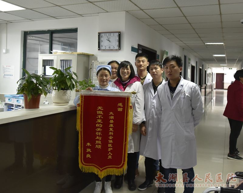 1月10日,患者朱先生及其家属带着一面锦旗来到县医院康复医学科,并亲手将这份“谢意”送到护士长王琼的手中,以表达对全体医务人员高尚医德,精湛医术的无限感激和赞扬之情。