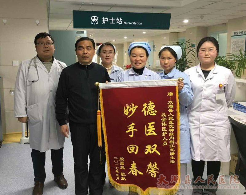 年关将近,令繁忙的县医院神经内科医护人员倍感欣慰的是,大家的工作又得到了患者的肯定,2017年1月15日一位复诊的患者将一面大红锦旗送到神内医护人员手中。