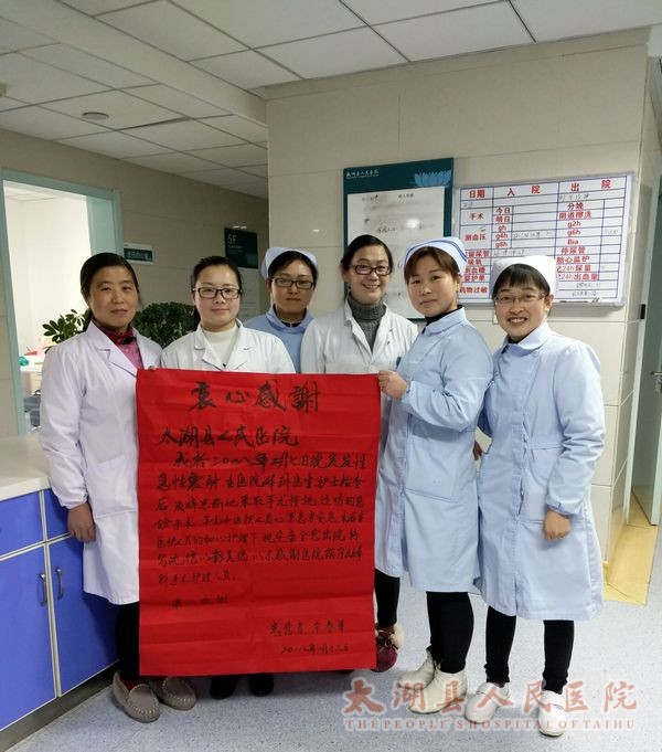 这是24床余女士家属送来的一封红纸手写的感谢信。余女士因“反复下腹痛”急诊入院,经过检查诊断为“卵巢囊肿蒂扭转”,予以紧急手术。术后在医护人员的精心治疗护理下,恢复很快,家属十分感激。于是特别有心地手写一封大红感谢信,表达对全体医护的感激之情!(妇科 刘薇)