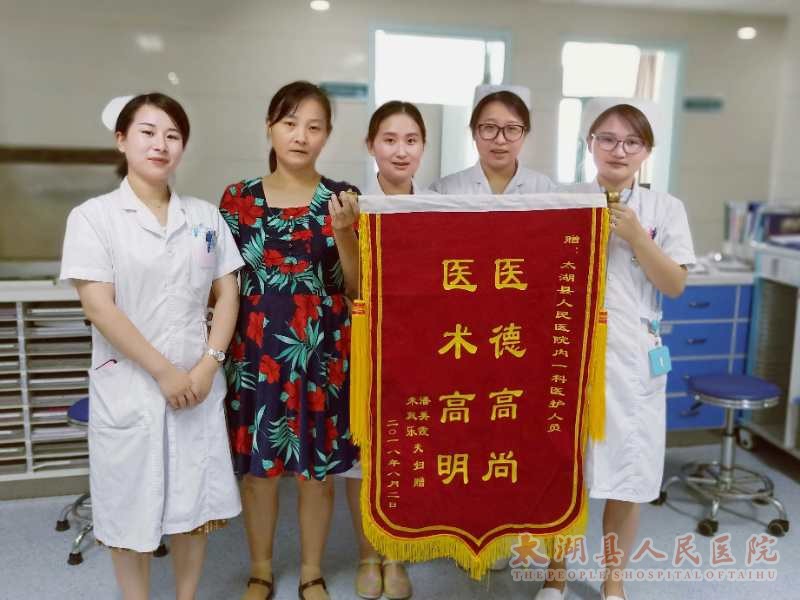 ,引导患者合理科学的饮食。经过医护人员的精心治疗护理,朱先生的血糖控制的很好,并延缓了其他并发症的发生,朱先生的生活质量有了显著的提高。为了表达谢意,朱先生和他的爱人特地送来这面锦旗。 (内一科 熊礼丹)