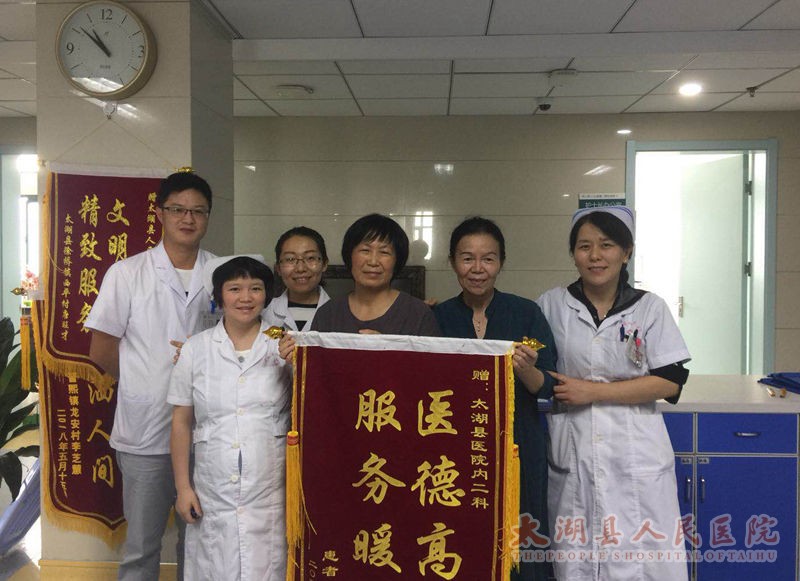 魏奶奶是内二科一位81岁高龄的患者,患有冠心病且长期卧床休养。在住院的这段期间,医生每天根据老人的病情制定最佳治疗方案,护士们也及时为老人翻身排背排痰,细心护理,并时常进行心理疏导安慰老人。在医护人员共同努力下,老人家恢复得很好。内二科医护人员的一举一动悉数看在患者及家属的眼中,深深感动着这家人,在中秋节这天,特意送来这面锦旗表达感谢之情。对此,床位医师汪洁表示,救死扶伤是医生的天职,患者的感谢更是对我们医护人员的鼓励与鞭策。(内二科 章丹)