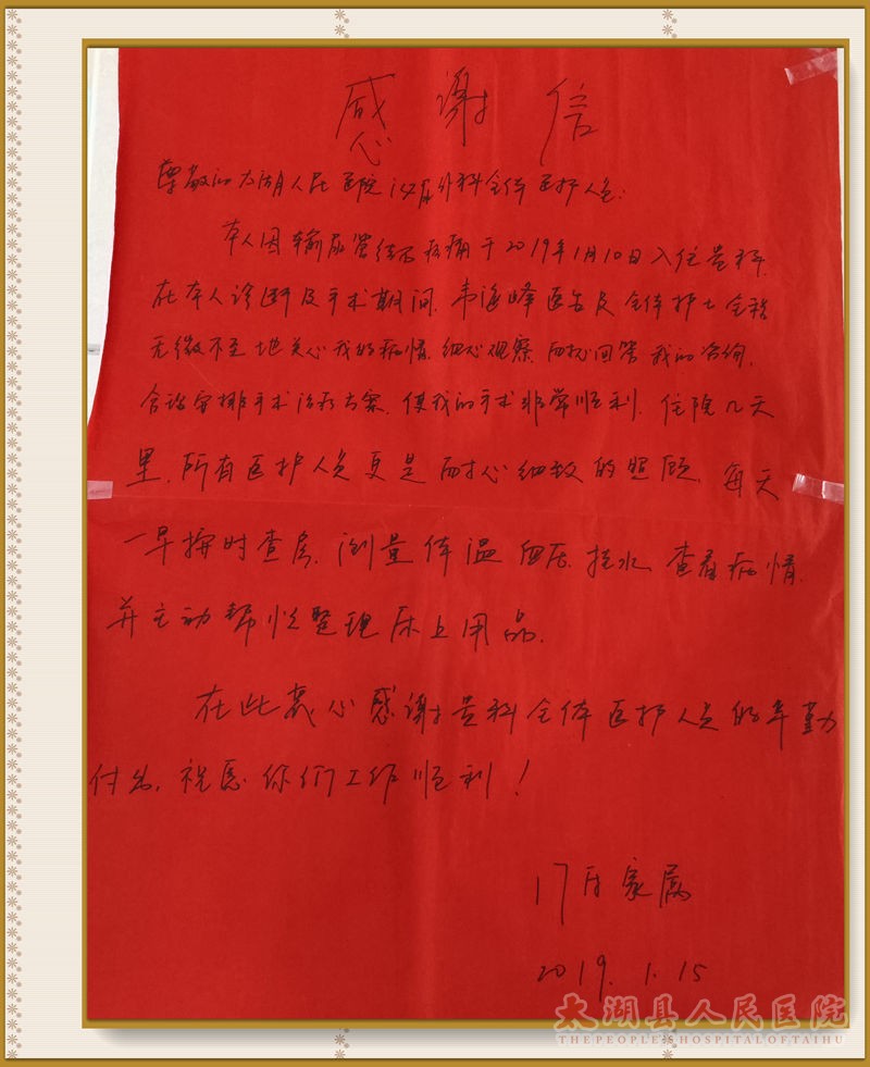1月15日,泌尿外科护士站收到一封来自患者的感谢信。