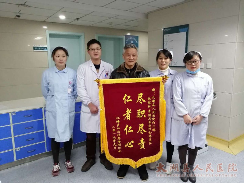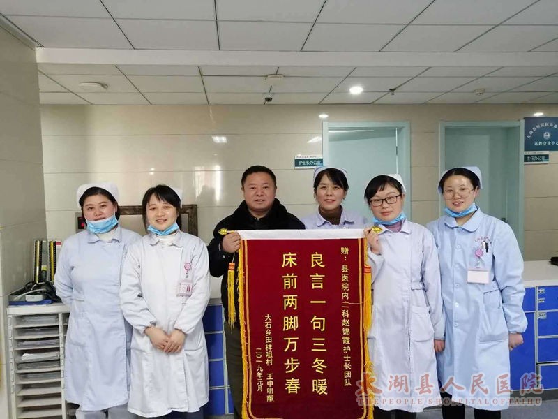 出院后不久,朋先生就在家人陪同下将这面锦旗送到内二科,并再三表达着全家的感激之情。
