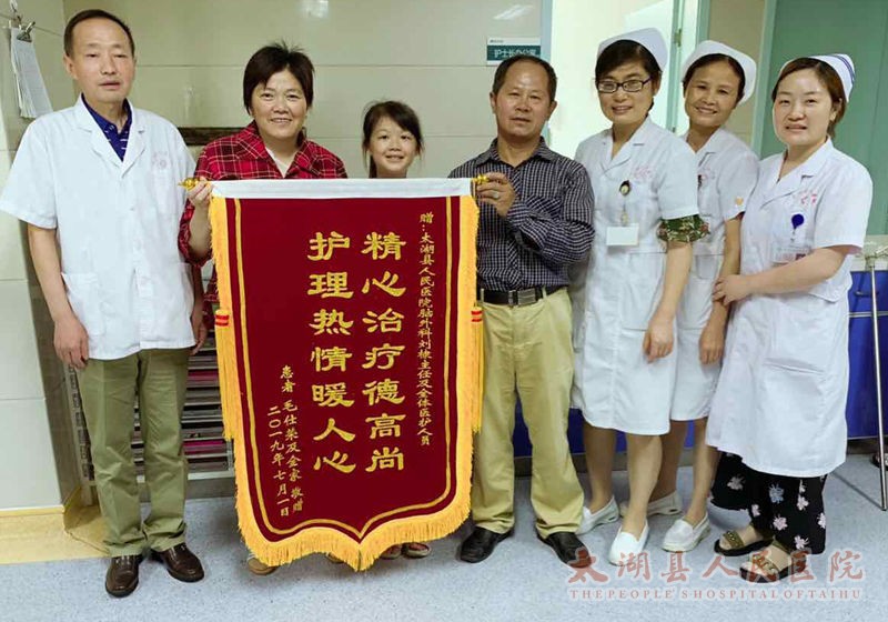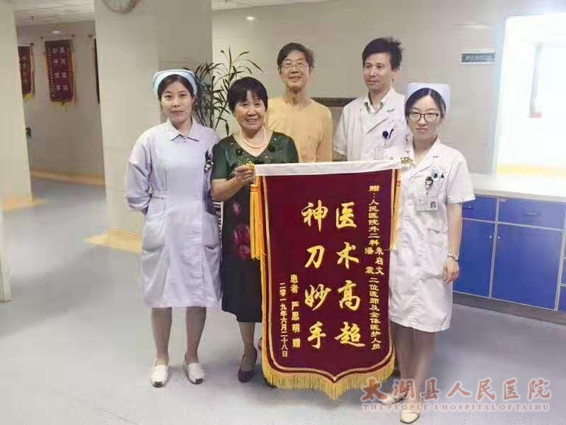 6月28日上午,外二科收到来自患者严思明及家属的“医术高超,神刀妙手”的鲜红锦旗。