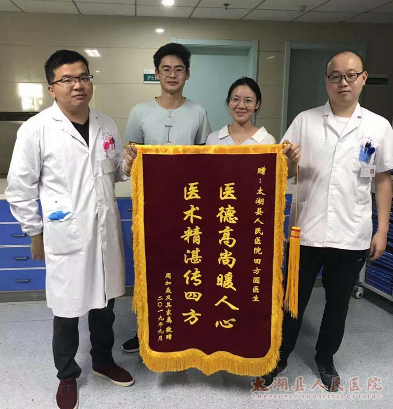 2019年9月28号下午,我院骨一科收到一面周加焱患者家属送来的锦旗——“医术精湛传四方,医德高尚暖人心”,烫金大字吸人眼球,更深入人心。