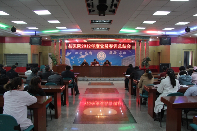 [size=4] 2012年2月21日下午,县医院支部在门诊七楼多功能厅召开2012年度党员春训总结会,会议对本次春训工作做了全面总结,并评选出了2011年度优秀党员。院领导刘小平、方书法、邓亚东、甘志华、郑效珍、周家林等出席会议,全体党员及入党积极分子参加了大会,会议由支部委员、监察室主任陈科茂主持。