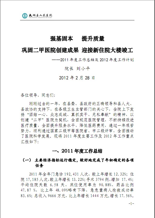 刘院长在2011年工作总结表彰暨2012年工作会议上的讲话
