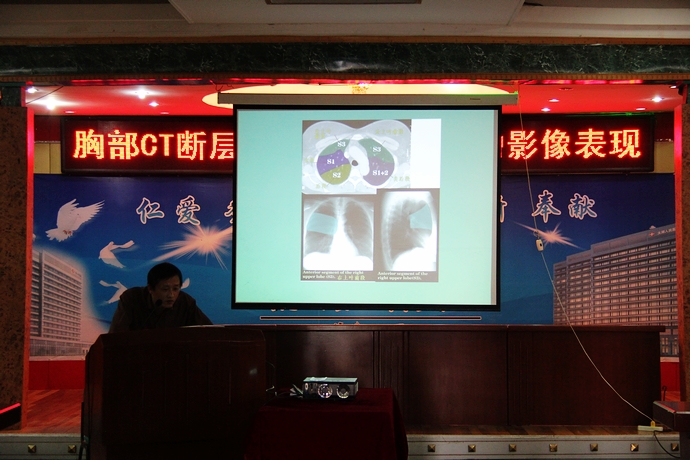 [size=4][font=楷体_GB2312] 4月26日下午,我院在门诊七楼多功能厅举办[/font][/size][size=4]进修人员成果汇报学术讲座,CT室主治医师韦文焕做《胸部CT断层影像及常见疾病影像表现》学术报告。[/size][size=4]