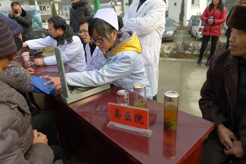 为深入学习宣传贯彻党的十八大精神,推进社会主义先进文化、科卫生大繁荣大发展,进一步动员社会各界关心支持广大农村建设,力争为农民办更多的实事、好事,尽力为农业、农村、农民服务,更好为农村经济发展和社会稳定作出贡献。在县委宣传部的牵头下,2013年1月23日, 县科协、文广局、卫生局、农业局、文联、司法局、安监局等十多个部门到太湖县小池镇海会村开展了送科技、文化、卫生“三下乡”活动。本次活动以促进社会主义新农村建设为目标,从我县农业、农村和农民的实际出发,以科文化卫生三下乡活动为载体,进一步充实活动内容,创新活动形式,让服务社会、服务经济、服务基层的“三服务”理念深入人心。我院代表全县卫生系统参加此次活动,我们以实施农民健康工程为抓手,加强对村卫生工作的支援力度,在海会村开展了义诊活动,咨询和义诊服务群60余人次。