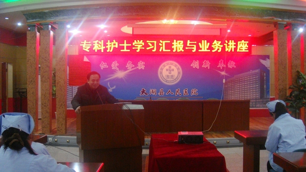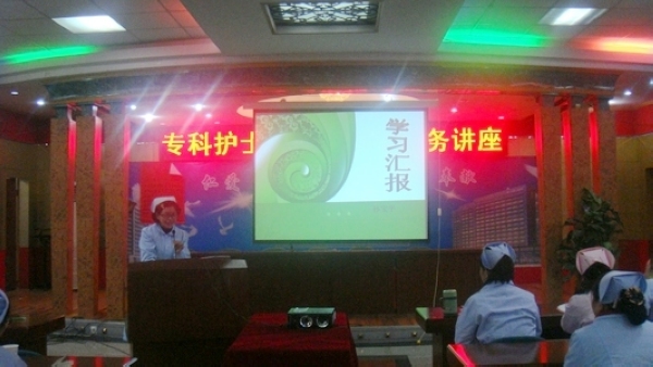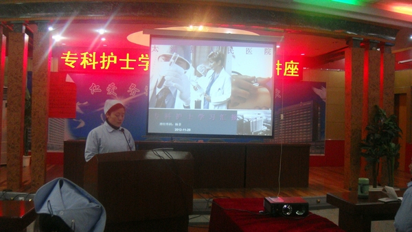 2012年12月20日下午,护理部在七楼多功能厅举办了全院性业务学习,由三名专科护士为大家进行学习汇报和业务讲座,她们分别是ICU专科护士杨菲、伤口造口专科护士胡燕、糖尿病专科护士孙宝平。 一直以来,护理部非常重视护理人才的培养,鼓励大家在职学习。2012年7月,这三名护理人员通过了全省专科护士选拔考试,在省专科护士培训基地接受了为期四个月的培训,现已学成归来。为发挥她们所学特长,达到资源共享,护理部特安排此次讲座,组织全院护理人员参加,让大家得到共同学习和提高。 ICU专科护士杨菲和大家分享了所学专科前沿知识和收获,给大家上了生动的一课,同时也体会到ICU护理工作辛苦和重要。伤口造口专科护士胡燕通过丰富的理论和大量的实例让大家明白了这个新兴专科的特点和优点,让大家知道可以从更专业的角度去处理复杂伤口,促进愈合,更好地促进患者康复,并对今后的工作提出了展望。糖尿病专科护士孙宝平从糖尿病的发病机理到糖尿病的健康教育,讲解深入浅出,让大家感觉到,作为一名护理人员,在糖尿病的预防和健康宣教中所起的重要作用。 此次讲座还特地邀请了分管护理的郑效珍副院长参加,郑院长在会上做了重要讲话,表示医院很重